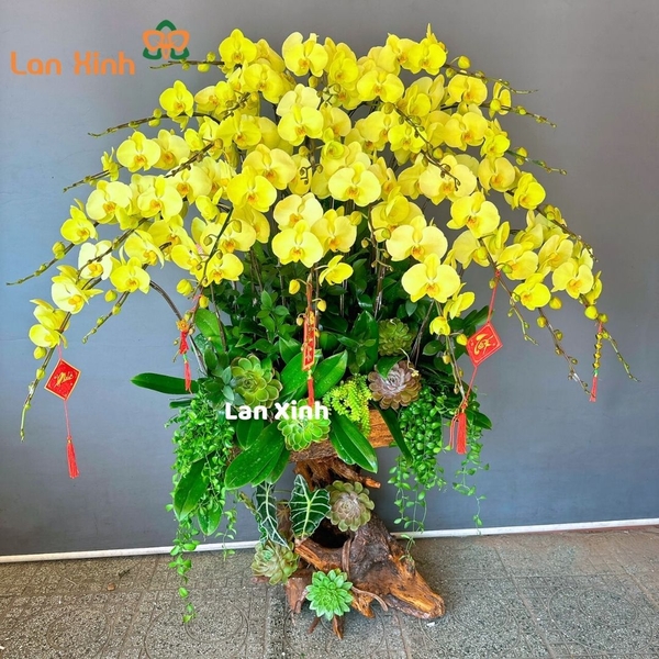 - Loại chậu và phụ kiện: Chậu sứ cao cấp, gỗ tự nhiên hoặc ghép lũa, trang trí kèm phụ kiện phong thủy (sen đá, tiểu cảnh) thường làm tăng giá trị của chậu lan hồ điệp.