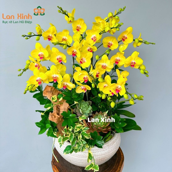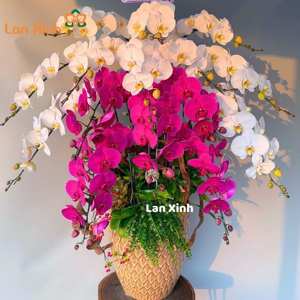 Những mẫu lan hồ điệp 11 - 20 cành LAN XINH được ghép từ những cây lan hồ điệp chất lượng cao, loại 1 với đặc điểm bông to, cánh hoa dày, mịn, hoa siêu bền, thân cành dài cứng cáp. Sắc lan hồ điệp lên chuẩn, toát lên sự rực rỡ, thanh nhã và sang trọng.