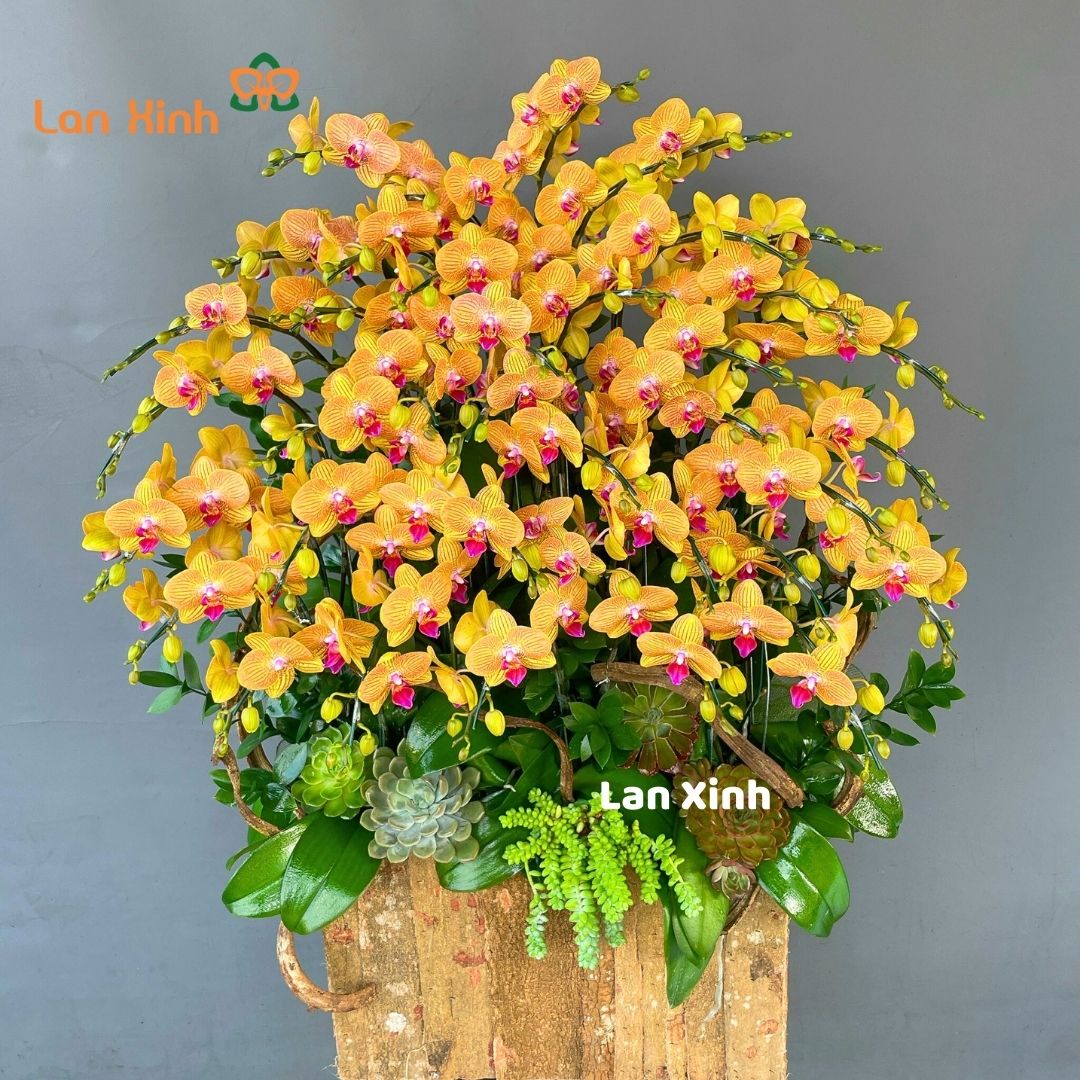 Với 40 cành lan hồ điệp cam sọc chậu gỗ nổi bật bật với sắc cam tươi sáng, được tô điểm bằng những vân sọc nhẹ nhàng tạo nên sự quyến rũ và thanh thoát. Chậu hoa lan hồ điệp cam sọc chậu gỗ này không chỉ mang lại không gian sống tràn đầy sức sống mà còn là một biểu tượng của sự sang trọng, quyền lực.