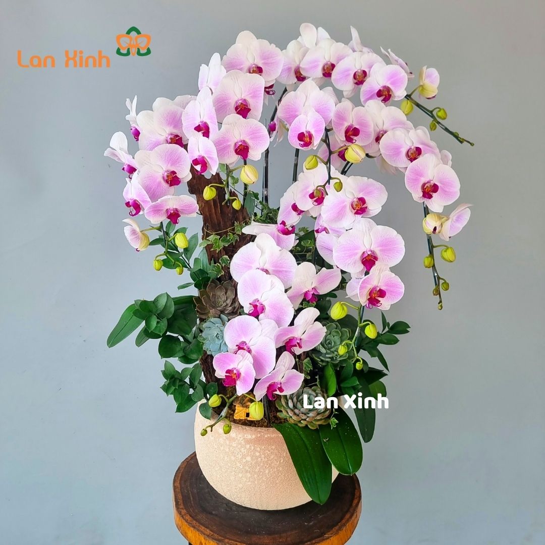 Sắc hồng mềm mại cùng viền trắng tinh tế tạo điểm nhấn nổi bật, gợi cảm giác nhẹ nhàng thu giãn. Với kiểu dáng nhỏ nhắn, chậu lan hồ điệp hồng viền trắng 7 cành để bàn này là lựa chọn hoàn hảo để tạo điểm nhấn tự nhiên và tinh tế trong không gian sống. Chậu lan hồ điệp hồng viền trắng 7 cành để bàn sở hữu vẻ đẹp dịu dàng và thanh thoát, phù hợp với nhiều không gian từ bàn làm việc đến bàn trà phòng khách.
