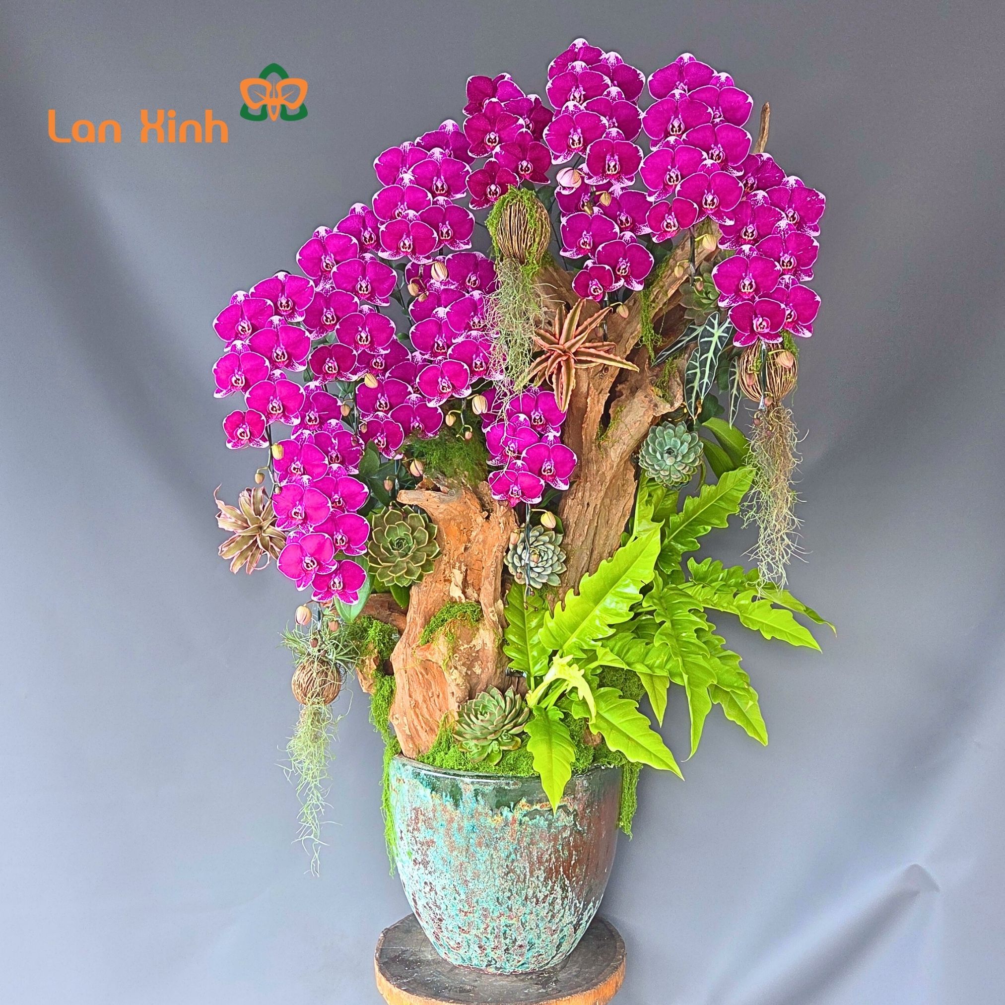 Mẫu chậu hoa lan hồ điệp tím đột biến ghép kiểu