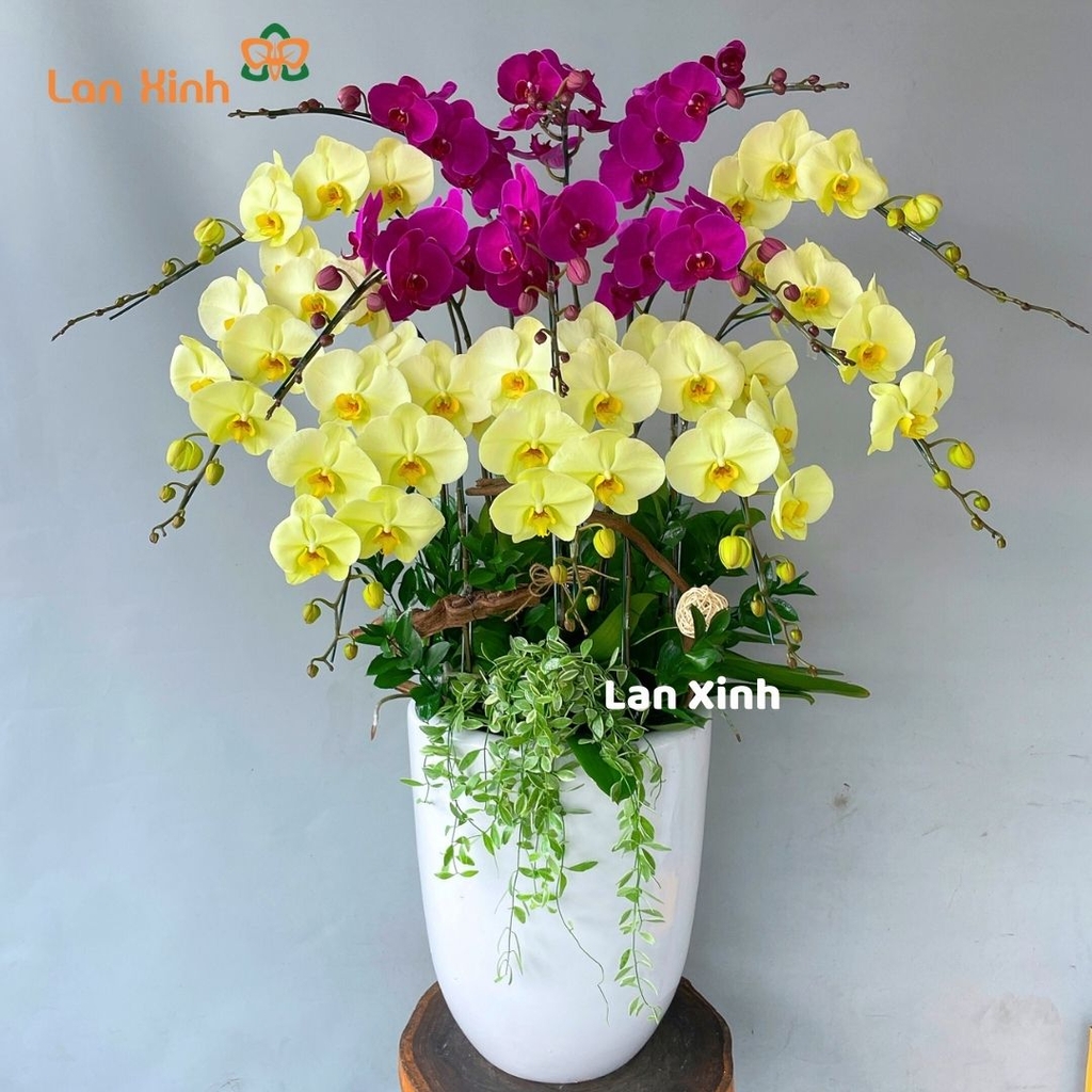 Mẫu chậu lan hồ điệp tím mix xanh táo tặng khai trương