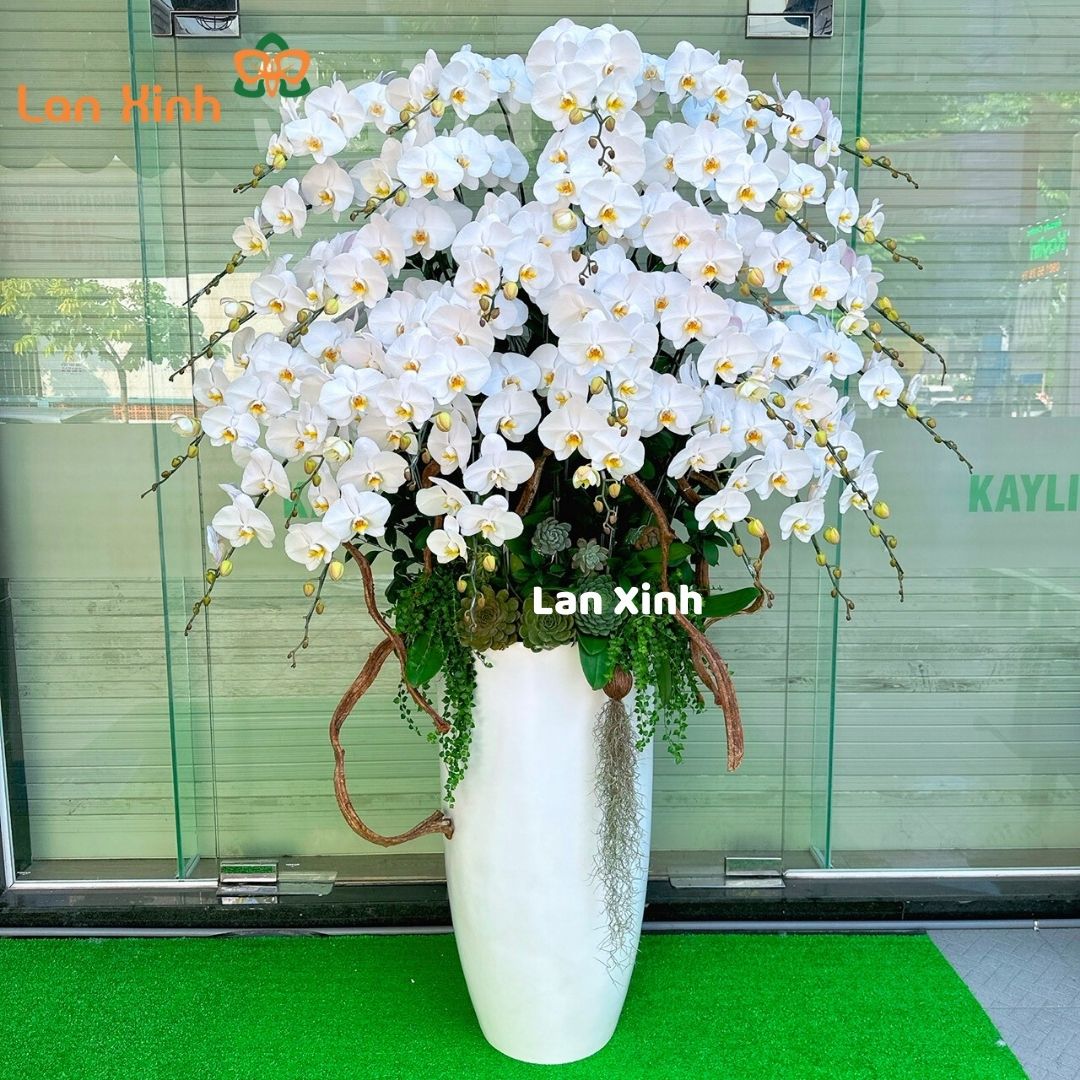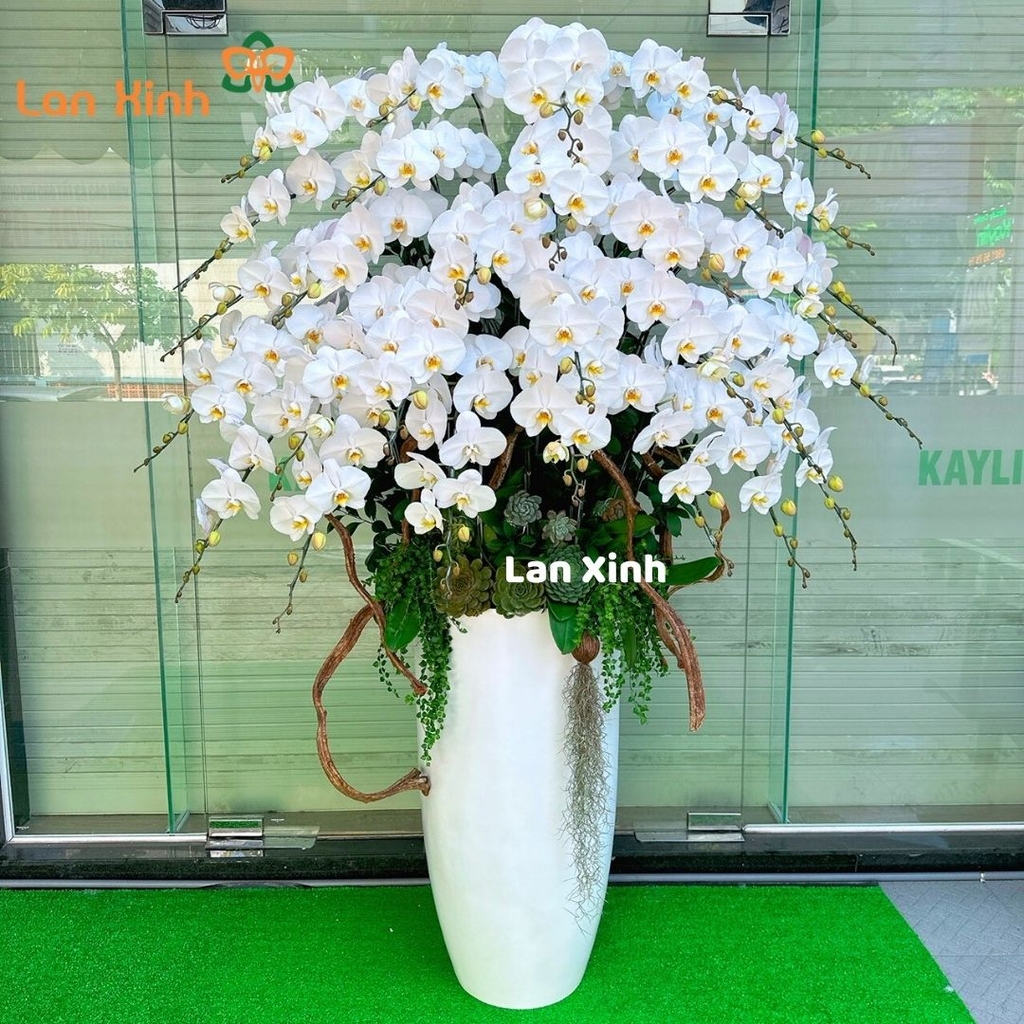 Mẫu chậu hoa lan hồ điệp trắng 30 cành chậu cao
