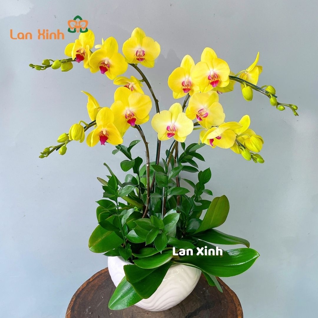 Mẫu chậu lan hồ điệp vàng 4 cành đẹp tặng sinh nhật