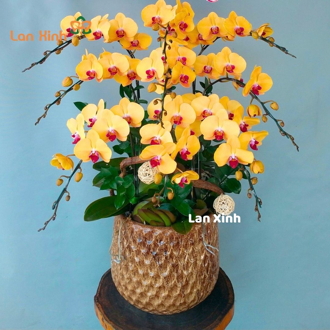 Chậu lan hồ điệp màu vàng lưỡi đỏ 9 cành HD376 - Mẫu 2
