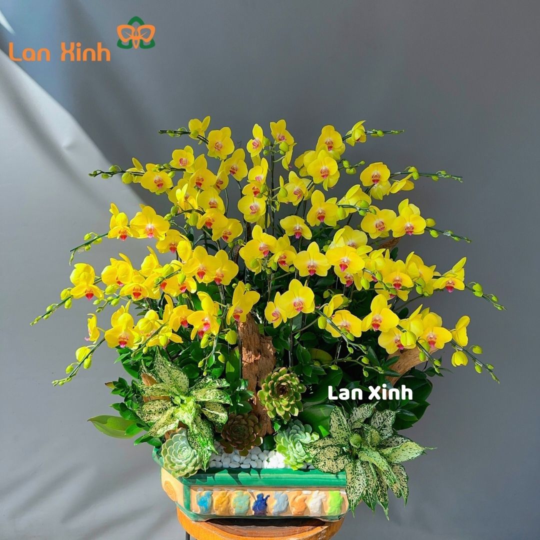 Mẫu chậu lan hồ điệp vàng sen đá bonsai 25 cành HD248