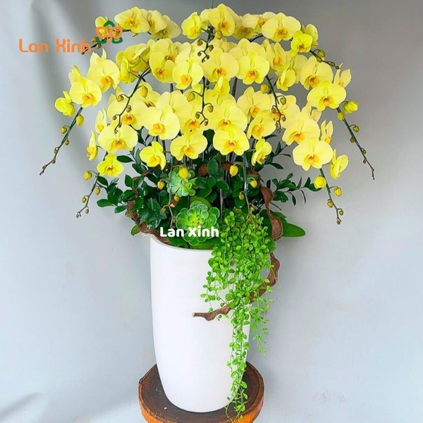 Mẫu chậu hoa lan xanh 12 cành chậu cao HD503