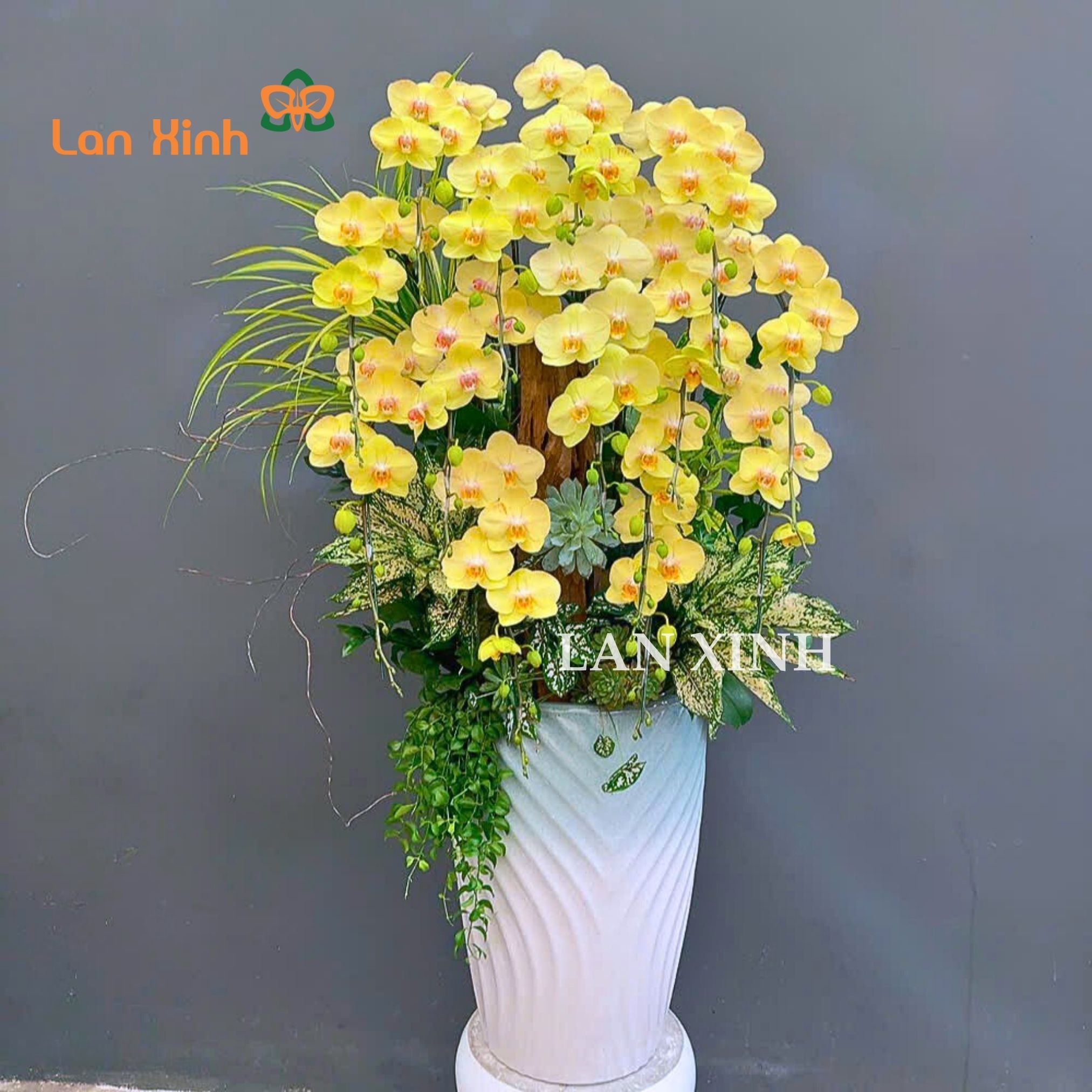 Mẫu chậu hoa lan hồ điệp xanh táo cao cấp tặng khai trương